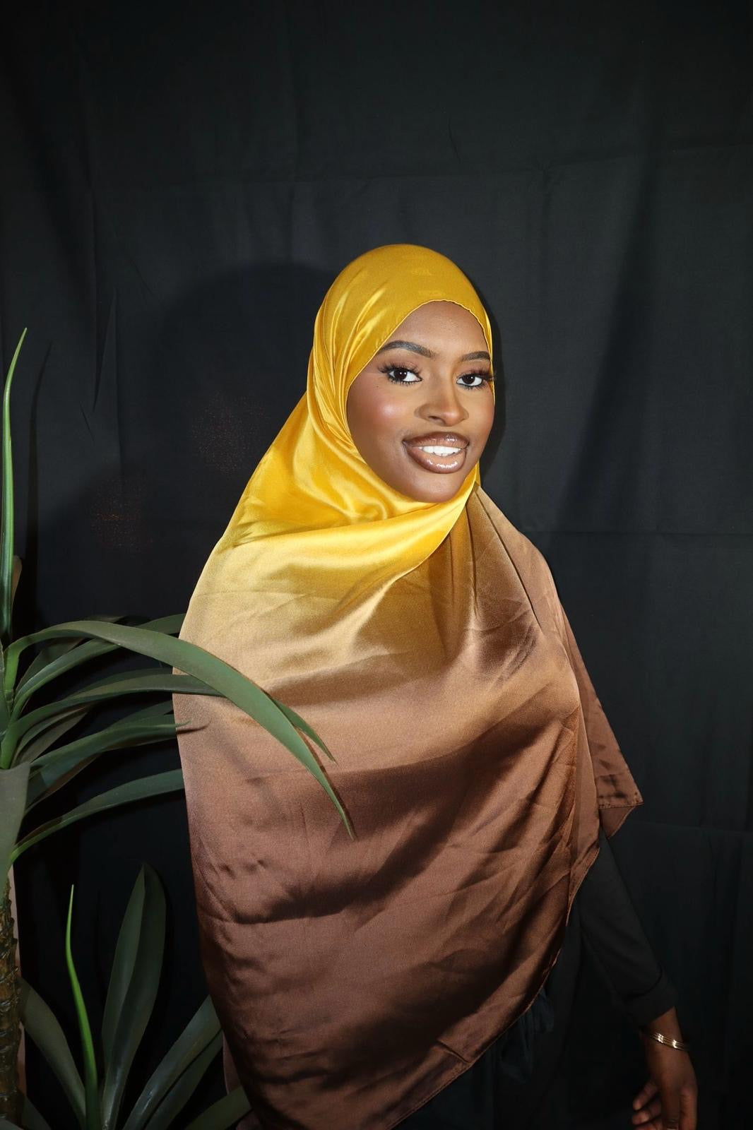 2FACED SILK OMBRE BROWN AND YELLOW HIJAB